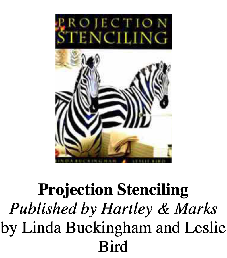 Turn a photo of your dog into a mural, learn faux etching for glass, or create faux wood inlay. All you need is a beginner’s knowledge of stenciling (covered in the book), basic stenciling supplies and a roll of butcher paper. Use the grid system or a photocopier to enlarge your image to the desired size, or use a projector (Tracer or overhead) to make enlarging even easier. This is not standard stenciling. This is Projection Stenciling – the possibilities are endless and the results are amazing!